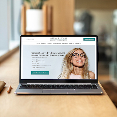 Our team built an SEO-optimized and fully responsive custom WordPress Website with an intuitive user experience aimed to seamlessly guide the user through Aston Eyecare’s services and straightforward booking process.
