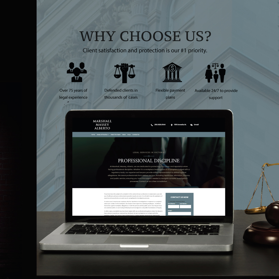 At Marshall Massey Alberto, justice isn’t just their profession—it’s their mission. With a reputation built on strategic advocacy, experience, and results, this Victoria-based firm needed a website that reflected their expertise in criminal defense, family law, and professional discipline while making legal help more accessible to those in need.
