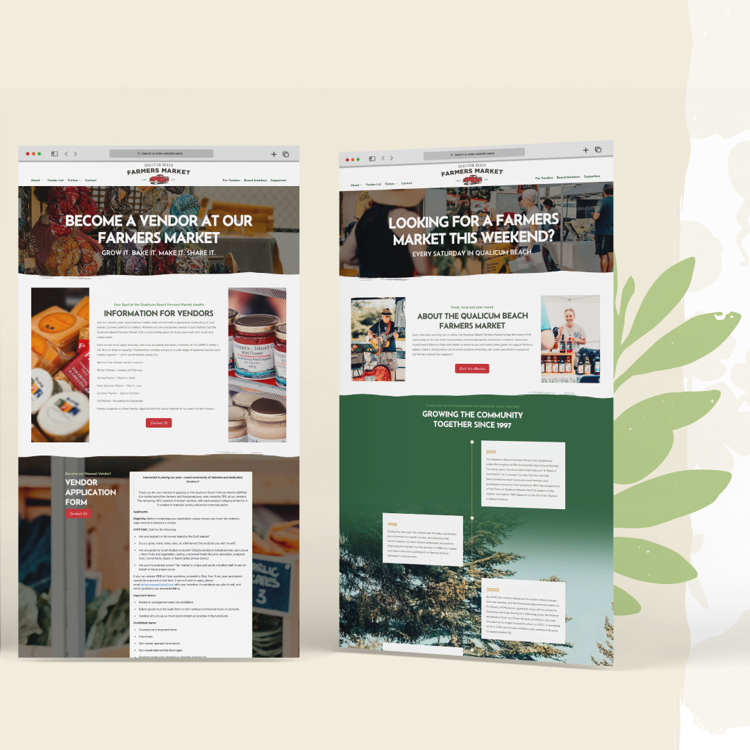 Nestled in the heart of Vancouver Island, the Qualicum Beach Farmers Market has been a Saturday morning tradition since 1997. The market celebrates local makers, bakers, and growers with fresh, homegrown, and handmade products. Our collaboration with the market resulted in a refreshed brand identity and a modern, community-focused website that embodies the spirit of connection, sustainability, and local pride.