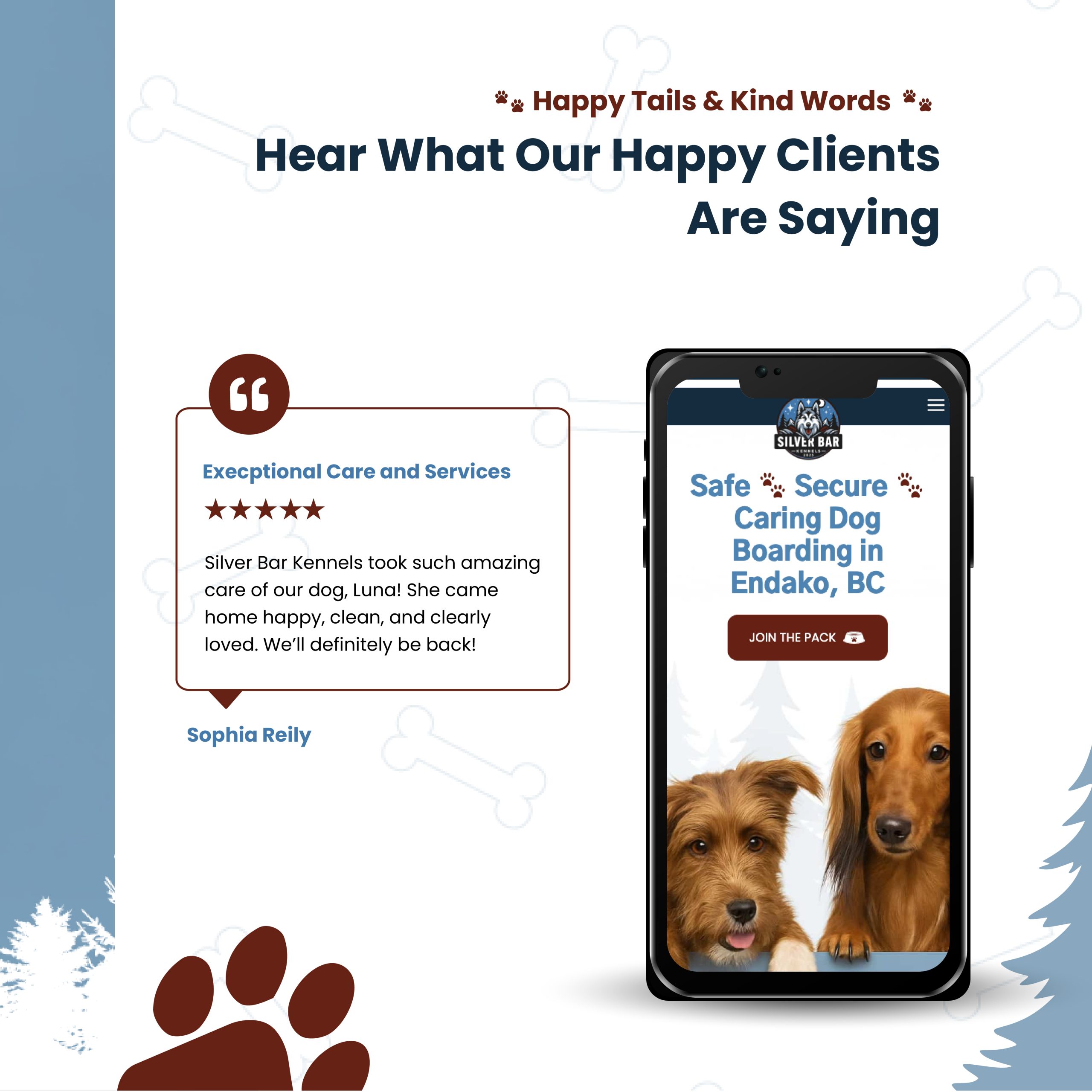 The redesigned Silver Bar Kennels website now delivers a professional, welcoming, and structured digital experience that supports trust and engagement. Key outcomes include: Clean, service-focused design that clearly presents boarding and training offerings Improved navigation and content hierarchy, making it easy to find services, policies, and contact information Responsive and accessible layout for desktop, tablet, and mobile devices Flexible WordPress content management, allowing the business to update services, images, and content with ease With thoughtful layout, intuitive flows, and attention to clarity, the new website strengthens Silver Bar Kennels’ online presence while supporting meaningful connections with clients and their pets.