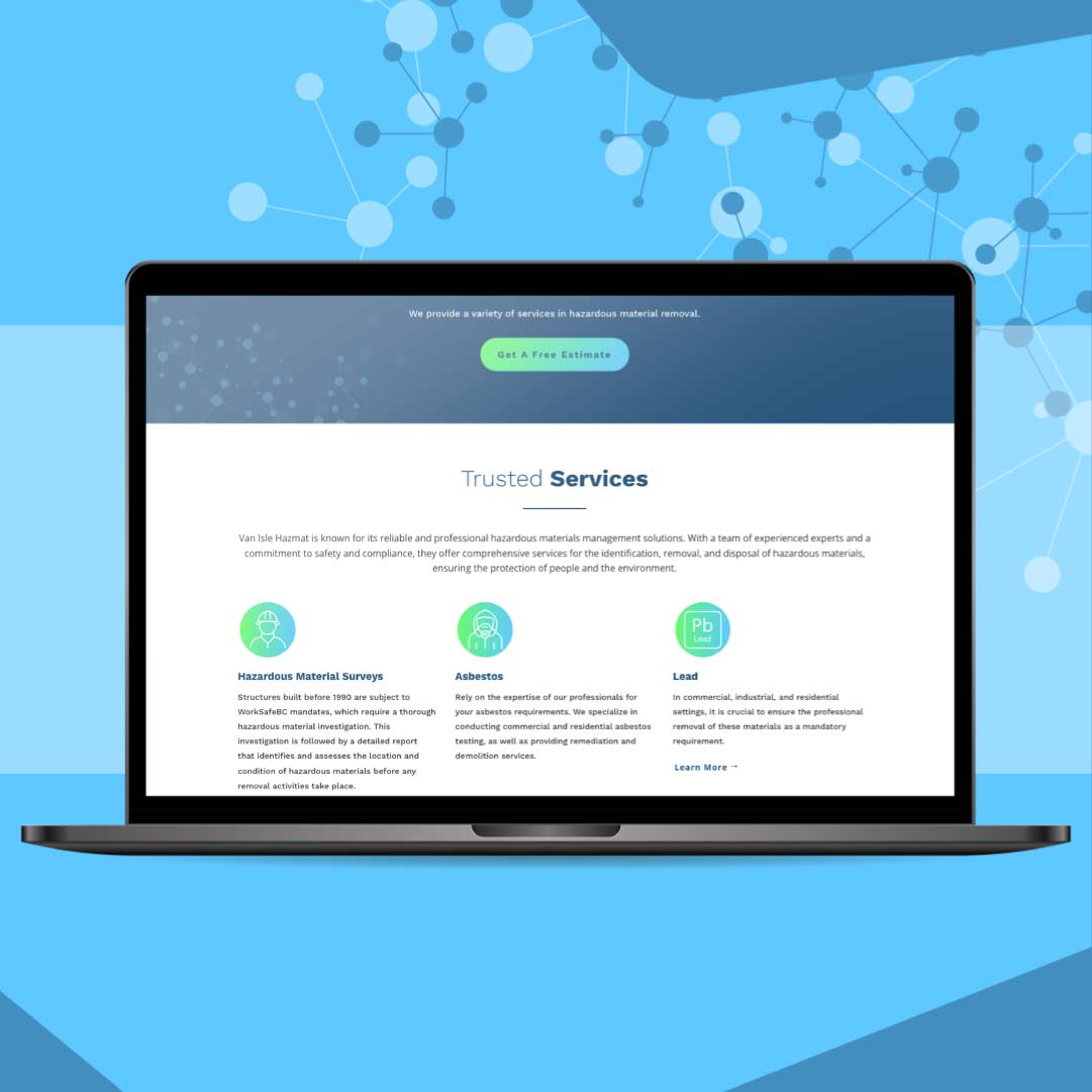 Van Isle Hazmat, a dedicated squad of hazardous material management and demolition pros on Vancouver Island, takes customization to the next level. Just as they meticulously tailor their on-site services to fit the unique needs of each project, they envisioned a website that mirrors this commitment. Our collaboration with Van Isle Hazmat delved deep into their world, understanding the intricacies of their hazardous material expertise and demolition prowess.