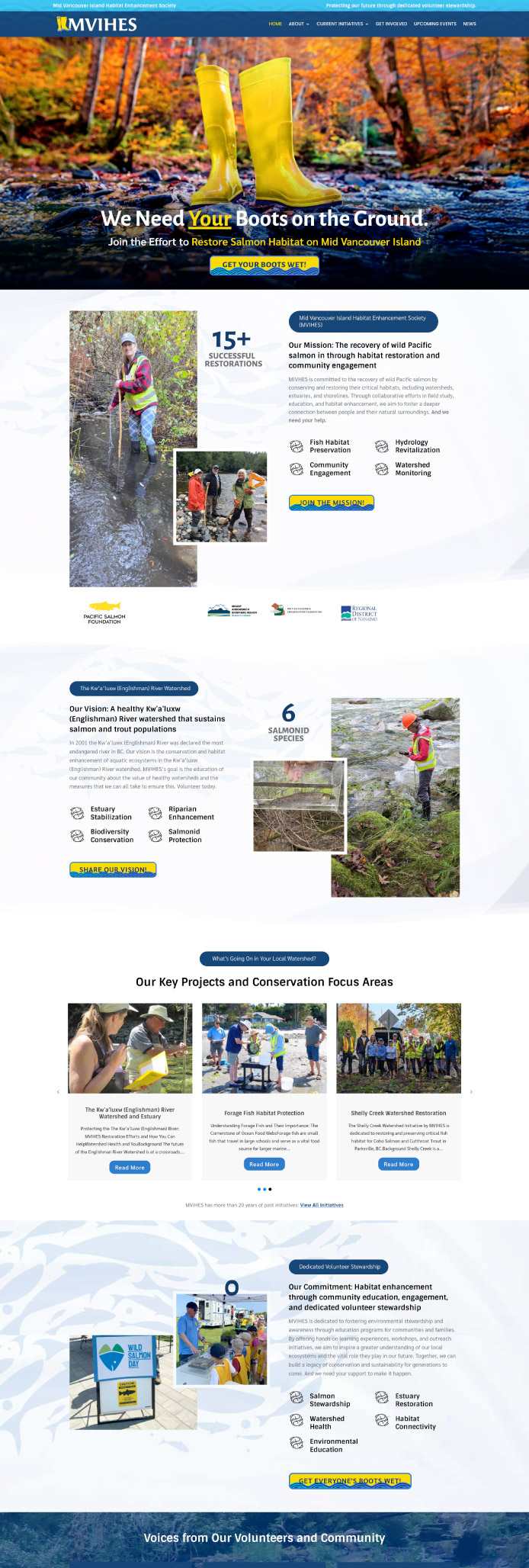 Based on Vancouver Island, the Mid-Vancouver Island Health & Economic Society (MVIHES) supports community well-being, economic development, and collaborative partnerships serving residents, organizations, and stakeholders throughout the region. As the organization’s initiatives expanded, its existing website no longer reflected the breadth of services, partnerships, and resources available, making information difficult for visitors to navigate and understand.